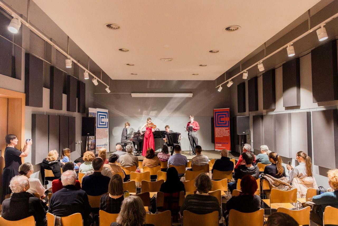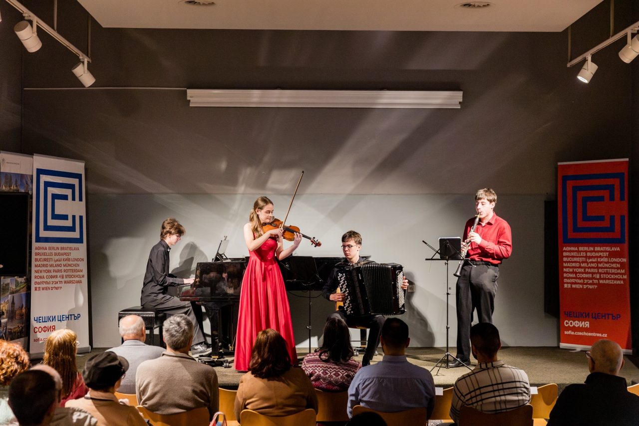 The concert featured Otakar Antonín Štefan (clarinet), Viktor Stocker (accordion), and Denis Stefanov (piano), joined by a special guest, the winner of Concertino Praga 2022, Bulgarian violinist Diana Chausheva. The performance was met with great enthusiasm—the Czech Centre was filled with an appreciative audience, and the artists were also invited for an interview on Bulgarian radio, with which we maintain a long-term collaboration.