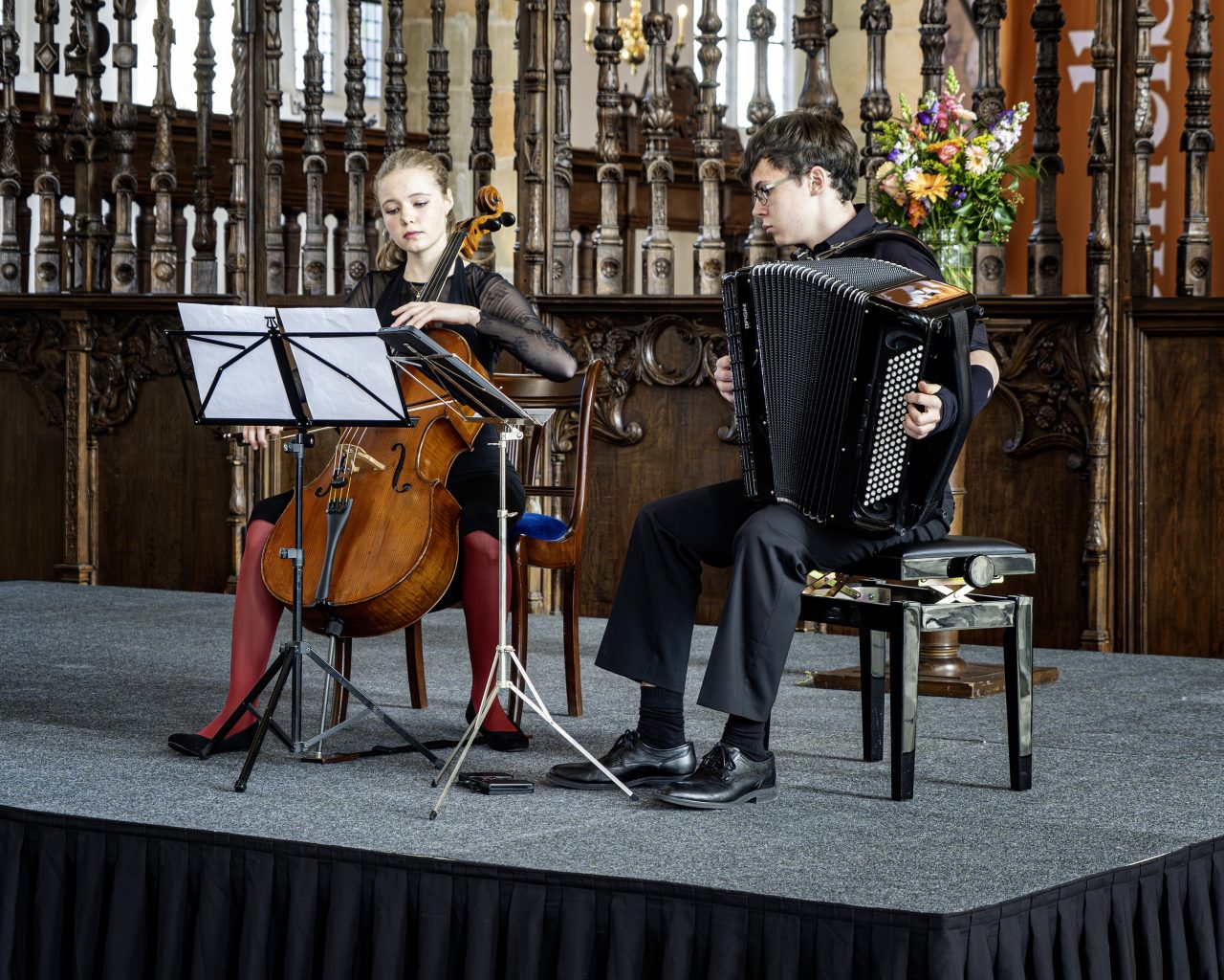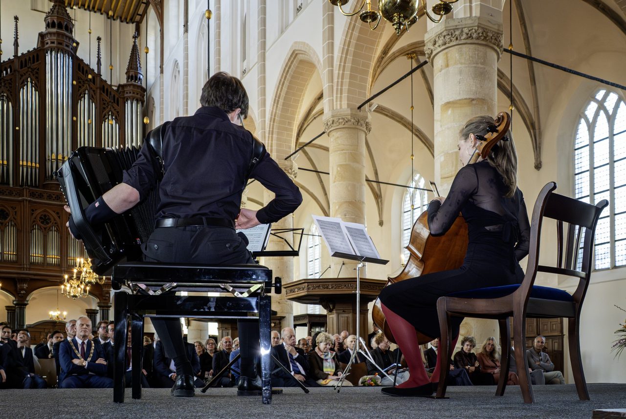 As part of the festive Comenius Day (Comeniusdag) in Naarden, the Netherlands, Viktor Stocker (accordion) and Naďa Strnadová (cello) performed. The concert formed part of the official programme commemorating the legacy of Jan Amos Comenius at the place of his final resting, taking place during a ceremonial reception for invited guests. The young Czech musicians presented, among other works, compositions by Johann Sebastian Bach and contributed to the dignified and culturally rich atmosphere of the event. They also took part in masterclasses in Brussels and Mons, led by renowned pedagogues Olsi Leka and Olivier Douyez.